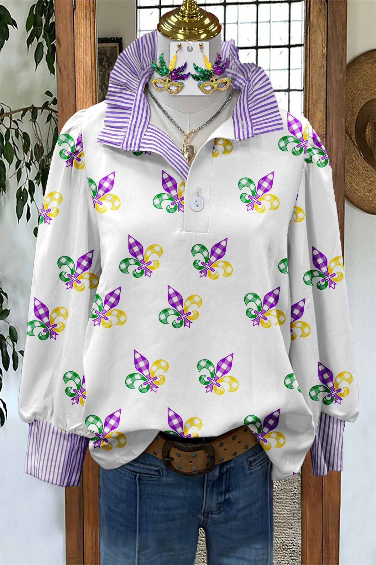 - Neckline: shirt collar