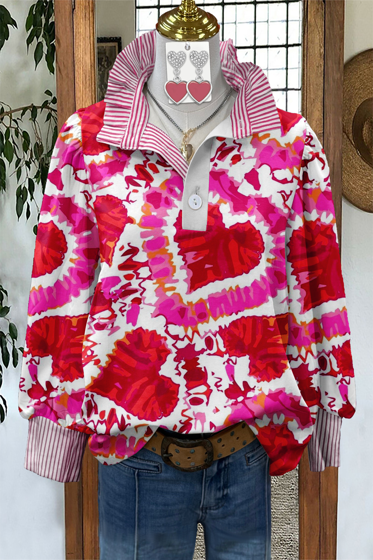 Valentine's Day Tie-Dye Heart Print Striped Blouse