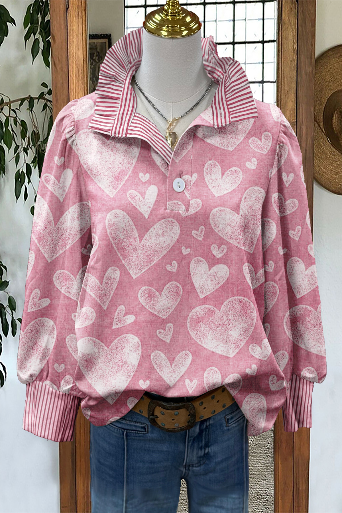 Vintage Valentine's Day Heart Print Blouse
