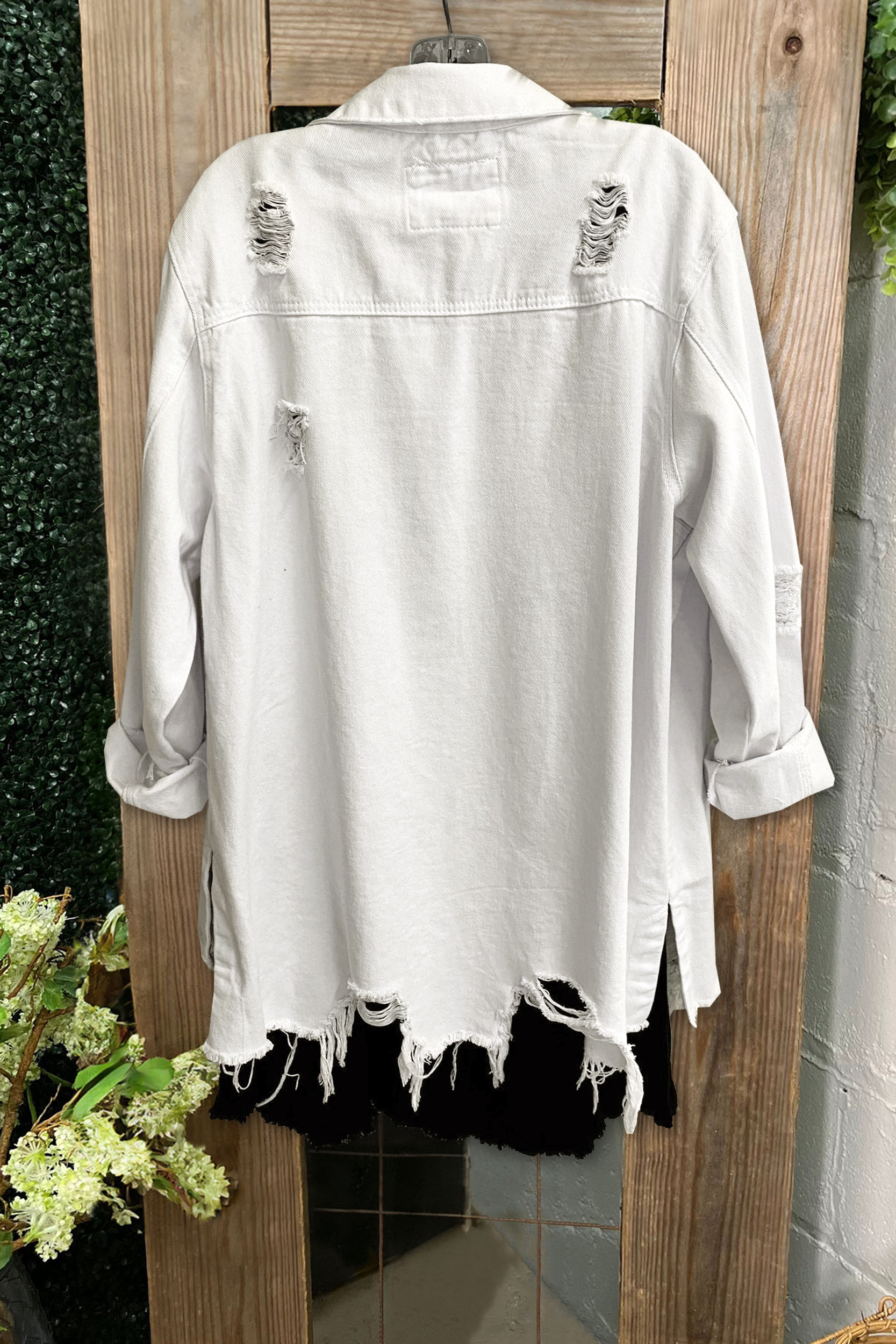 Ripped Holes Frayed Hem Denim Jacket