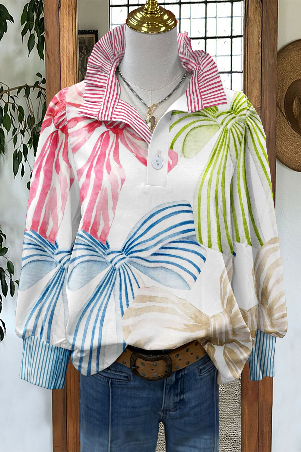 - Neckline: shirt collar