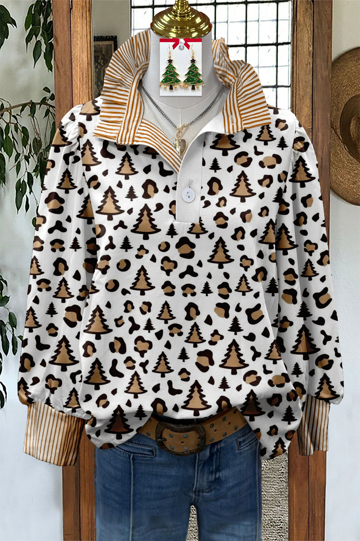 Stay on trend this season in our new classic, shirt collar top. We especially love the stripe fabric and think this piece will be a new favorite in your closet!