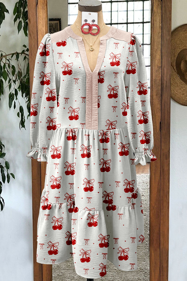 Stay on trend this season in our new elegant, v neck dress. We especially love the graphic print fabric and think this piece will be a new favorite in your closet!