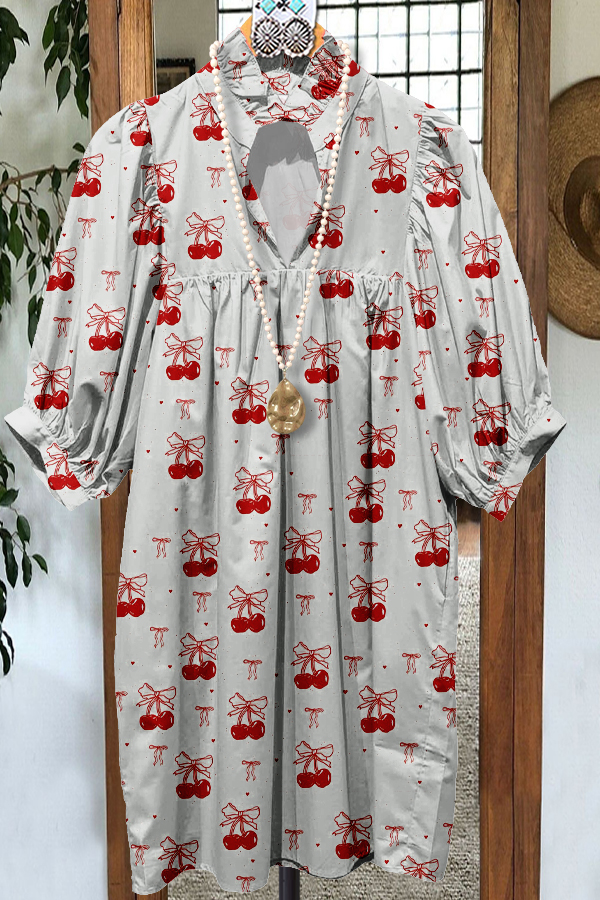 Classic Contrast Valentine's Day Cherry Midi Dress