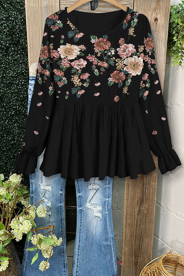 Romantic Waterfall Floral Ruffle Sleeve Top