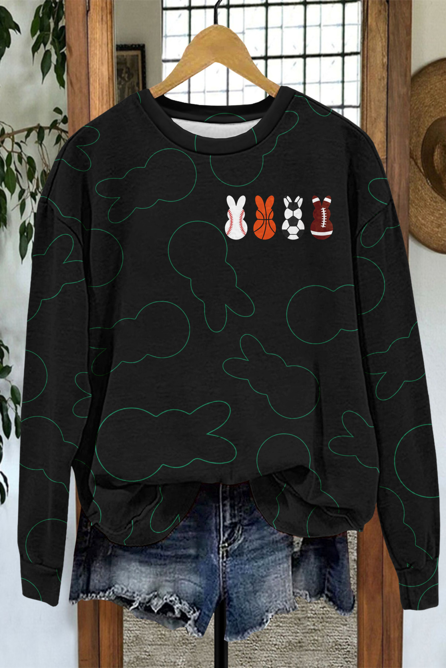 Stay on trend this season in our new playful, round neck sweatshirt. We especially love the graphic print fabric and think this piece will be a new favorite in your closet!
