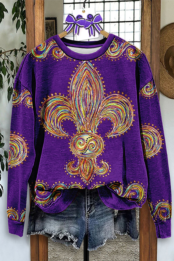Vintage Mardi Gras Print Sweatshirt