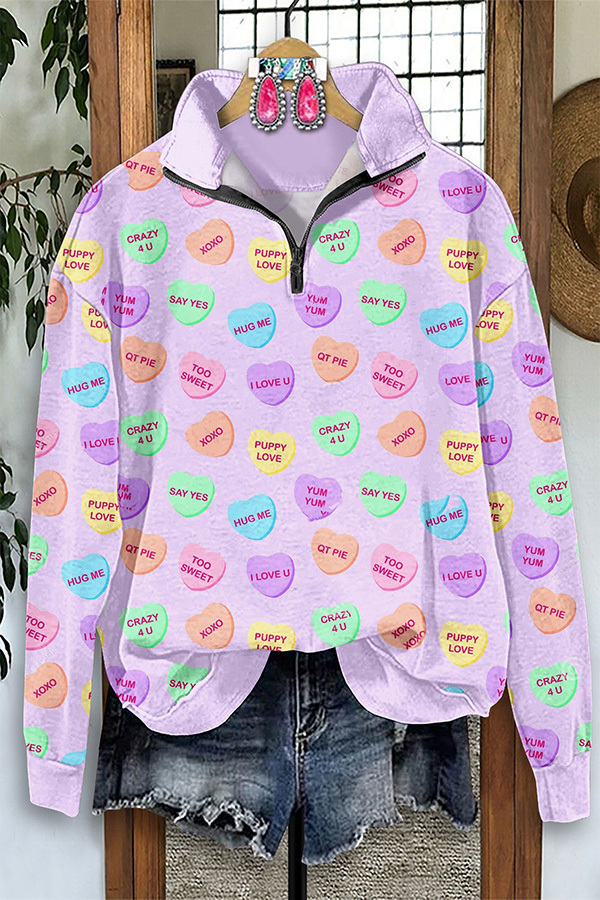 Beautiful Heart Print Zipper Sweatshirt