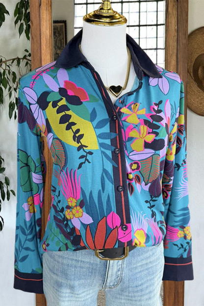 Stay on trend this season in our new pretty,stylish, shirt collar top. We especially love the flower print fabric and think this piece will be a new favorite in your closet!