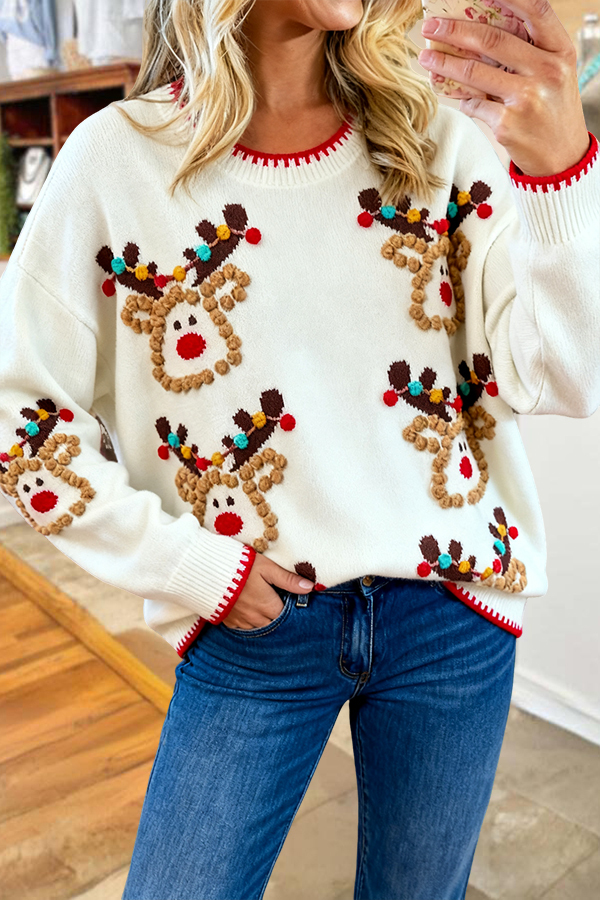 Stay on trend this season in our new stylish,cozy, round neck sweater. We especially love the christmas fabric and think this piece will be a new favorite in your closet!