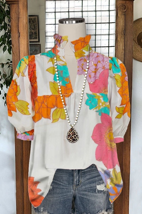 Stay on trend this season in our new casual, deep v neck blouse. We especially love the floral print fabric and think this piece will be a new favorite in your closet!