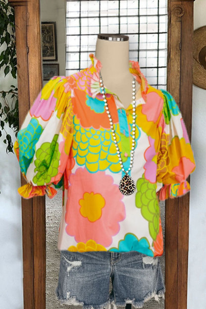 Stay on trend this season in our new casual, flared blouse. We especially love the floral print fabric and think this piece will be a new favorite in your closet!