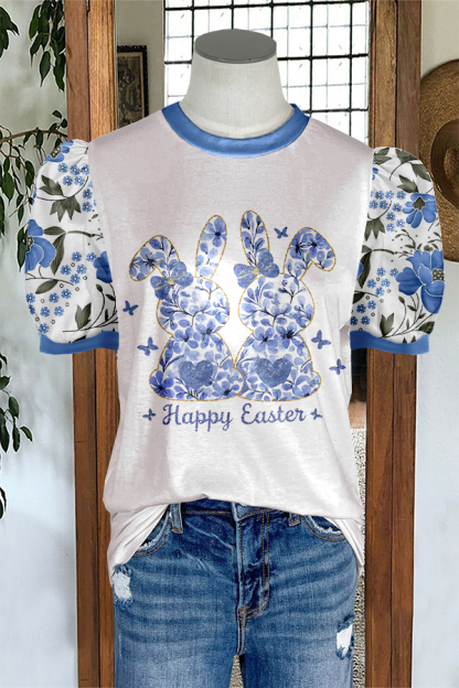 Cute Easter Bunny Print Puff Sleeve T-shirt