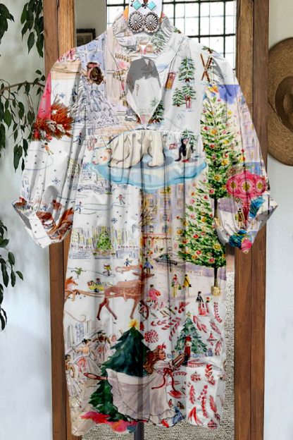 Classic Contrast Christmas Print Midi Dress