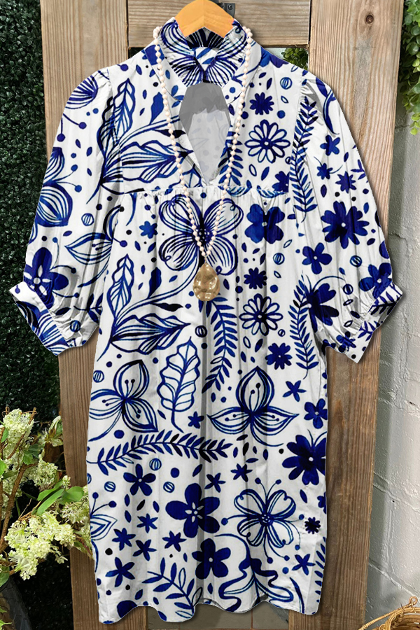 Elegant Contrast Graphic Print Midi Dress