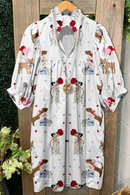 Elegant Contrast Color Dog Heart Midi Dress