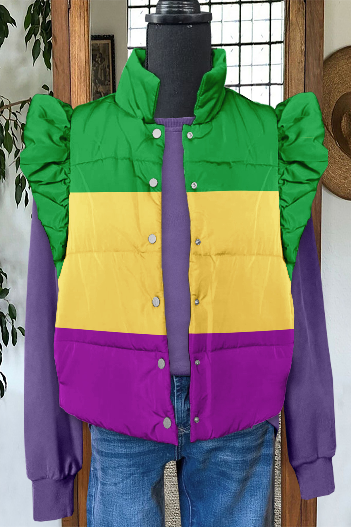 Stay on trend this season in our new classic, polo neck vest. We especially love the graphic print fabric and think this piece will be a new favorite in your closet!