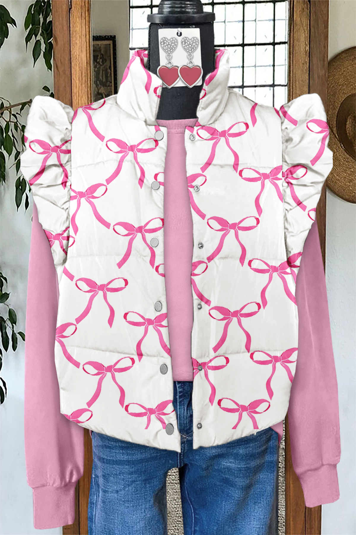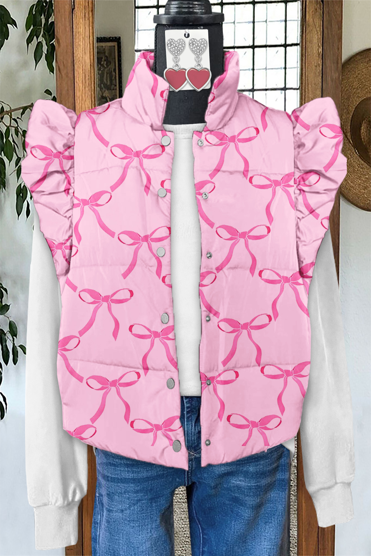 Sweet Valentine's Day Bow Print Fly Sleeve Vest