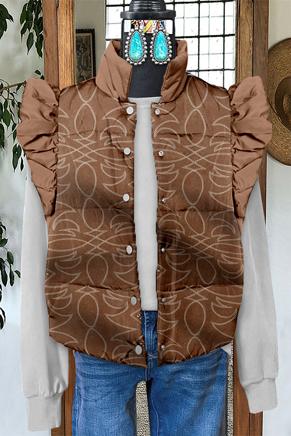 Vintage Western Boot-stitched Print Ruffle Sleeve Vest