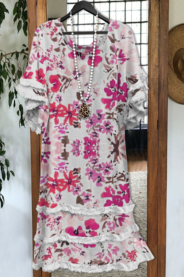Elegant Contrast Print Midi Dress