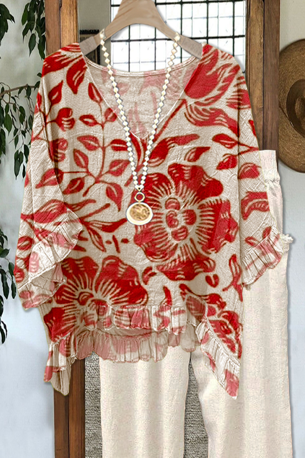 Elegant Contrasting Floral Print Blouse