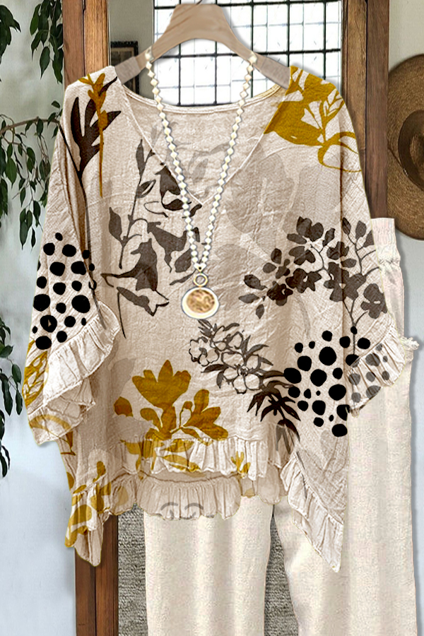 Stay on trend this season in our new elegant, v neck top. We especially love the graphic print fabric and think this piece will be a new favorite in your closet!