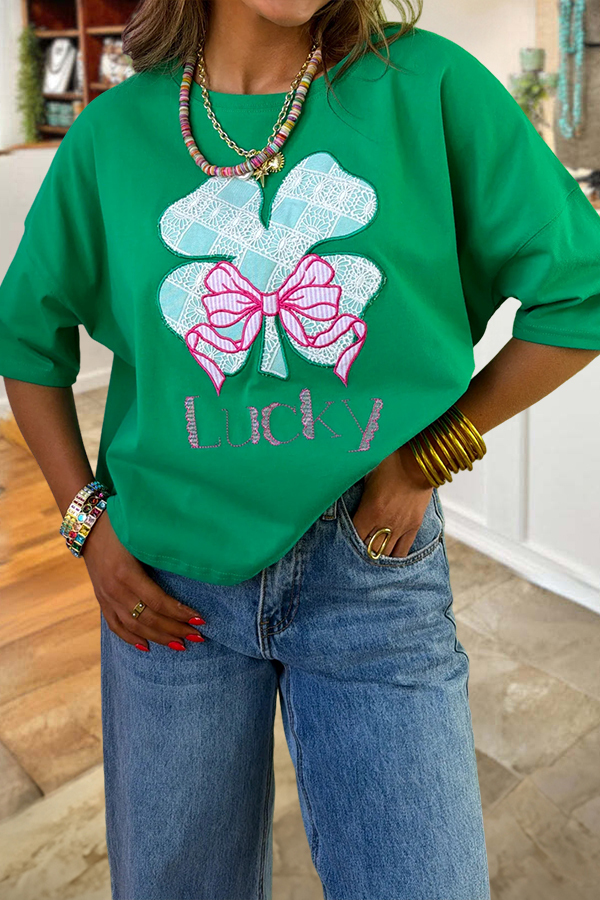 St. Patrick's Day Lucky Shamrock Bow T-Shirt