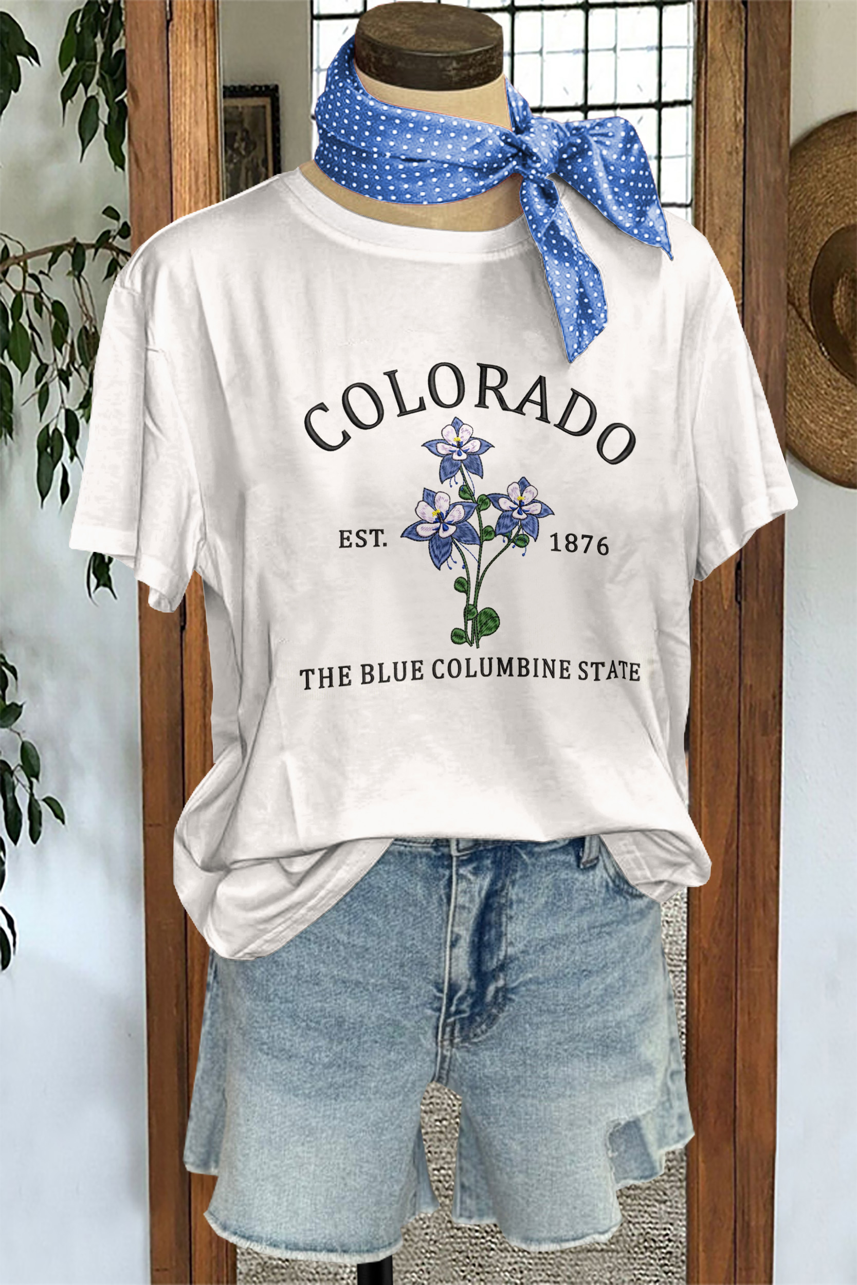 - Neckline: round neck