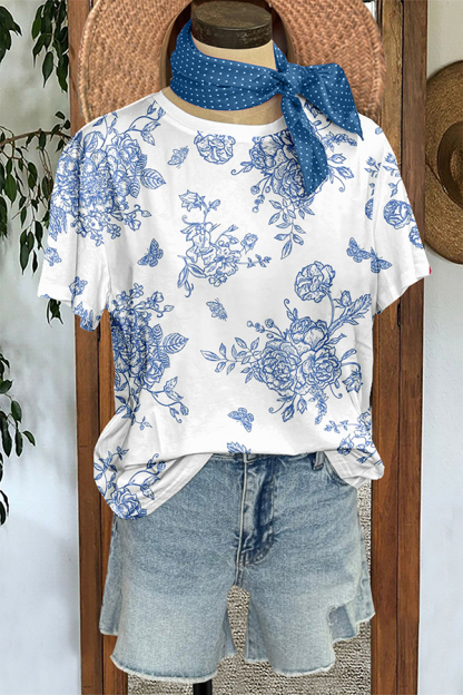 Stay on trend this season in our new casual, round neck t-shirt. We especially love the graphic print fabric and think this piece will be a new favorite in your closet!