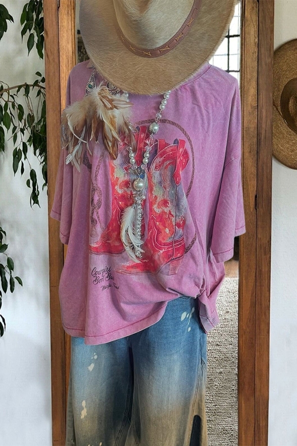 Stay on trend this season in our new casual, round neck t-shirt. We especially love the graphic print fabric and think this piece will be a new favorite in your closet!