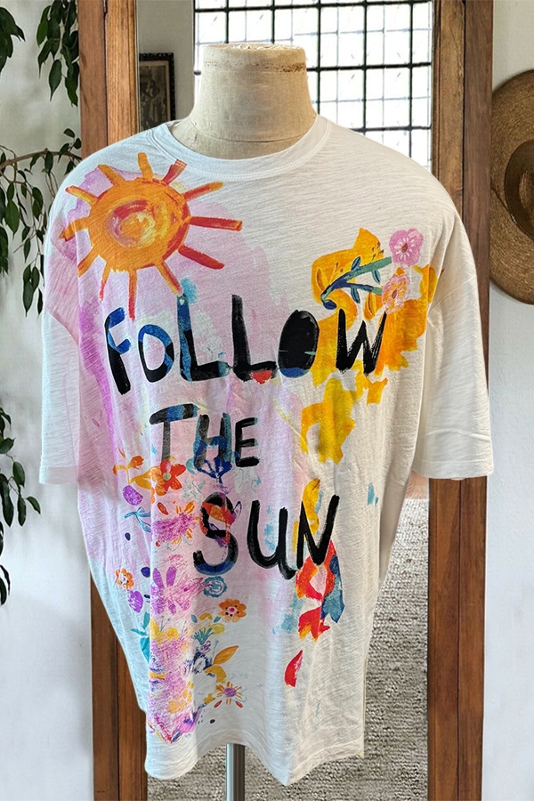 Stay on trend this season in our new casual, round neck t-shirt. We especially love the graphic print fabric and think this piece will be a new favorite in your closet!