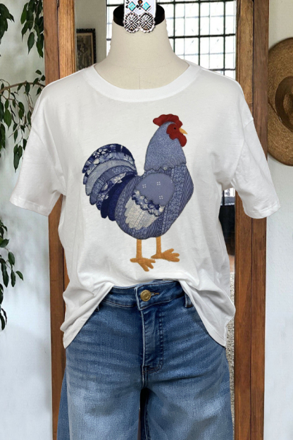 Stay on trend this season in our new casual, round neck top. We especially love the graphic print fabric and think this piece will be a new favorite in your closet!