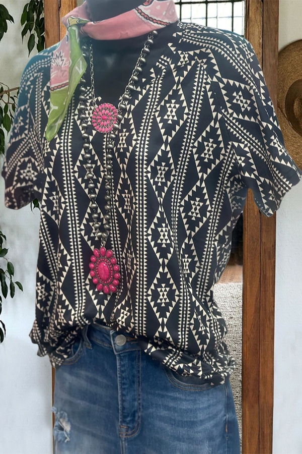 V-Neck Aztec Print T-Shirt