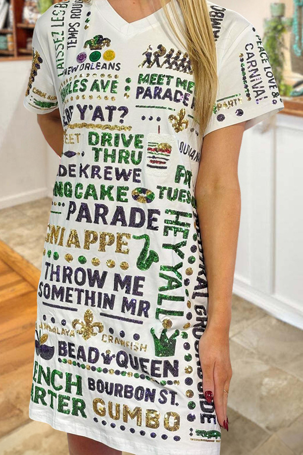 Mardi Gras V-Neck T-Shirt Dress