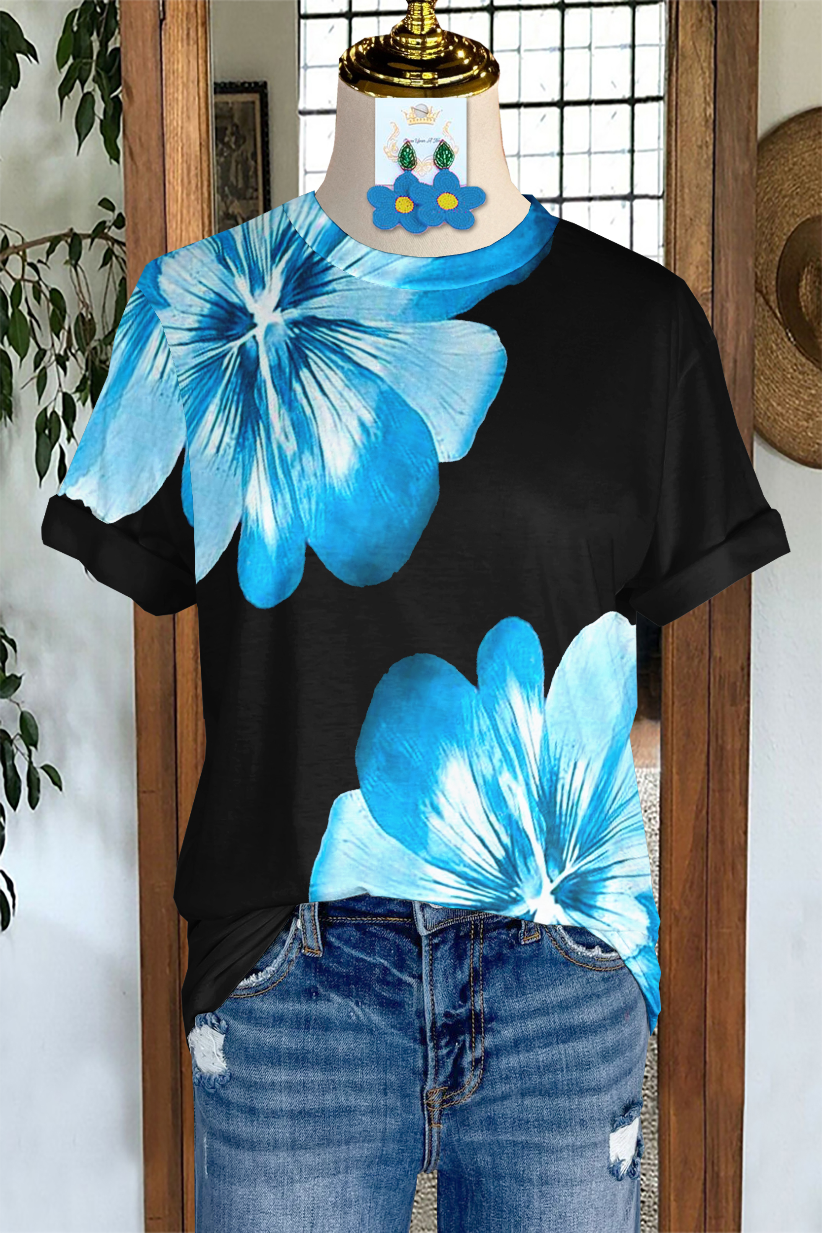 - Neckline: round neck