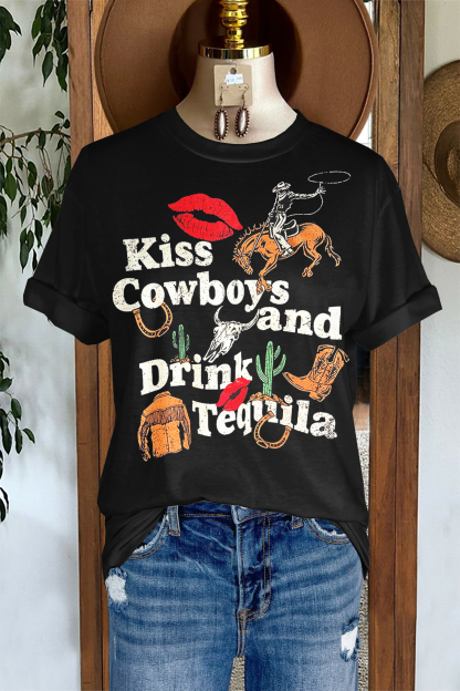 Western Kiss Cowboys Print Short Sleeve T-Shirt
