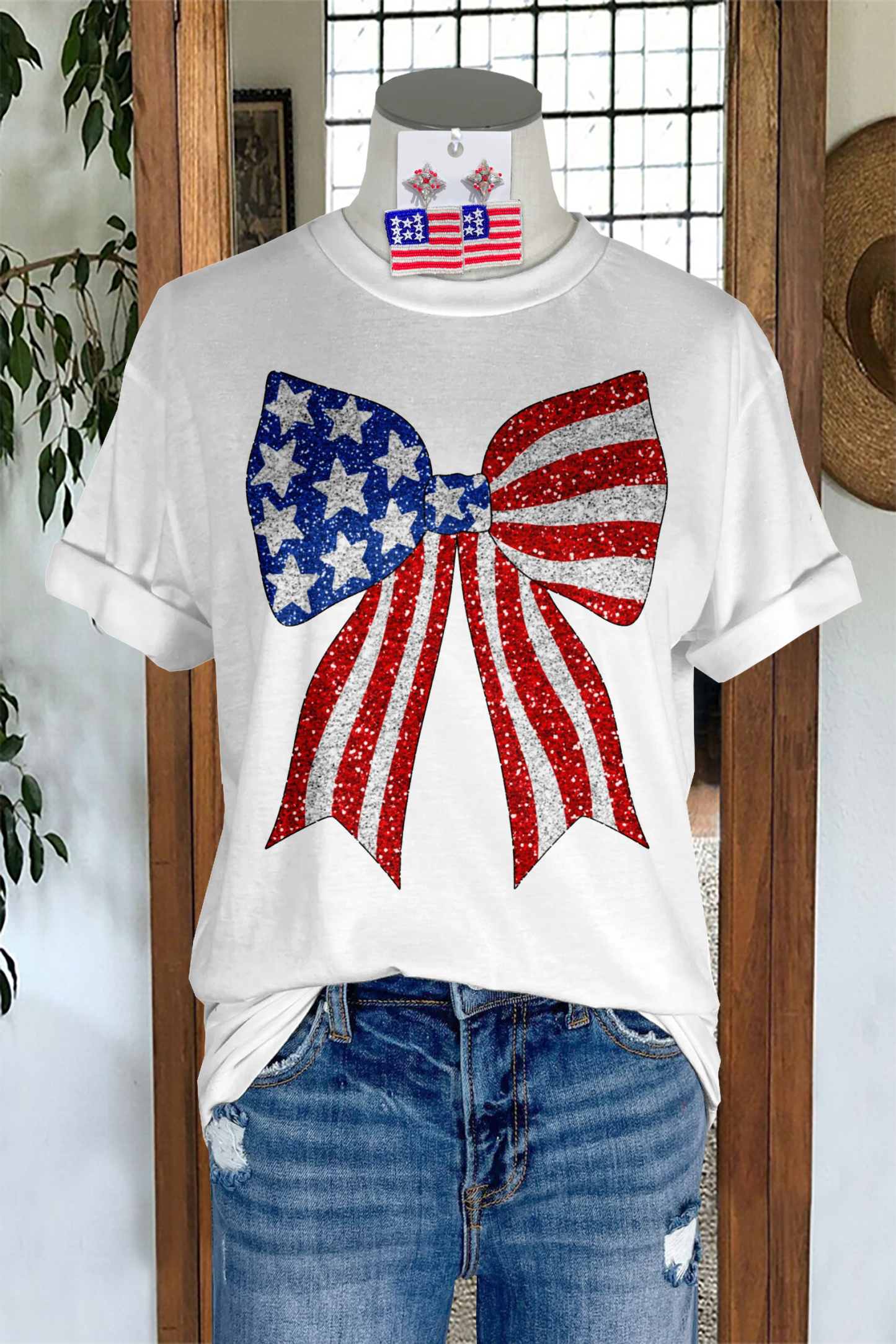 Stay on trend this season in our new classic, round neck t-shirt. We especially love the graphic print fabric and think this piece will be a new favorite in your closet!