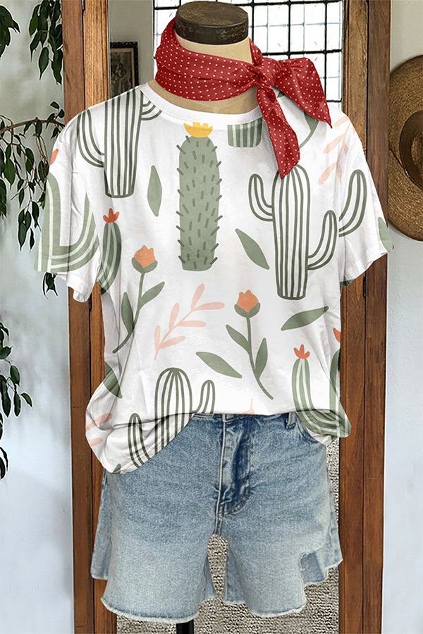 Vintage Western Cactus Print T-Shirt