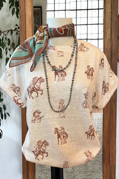 Vintage Cowgirl Print T-Shirt