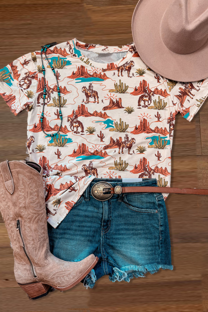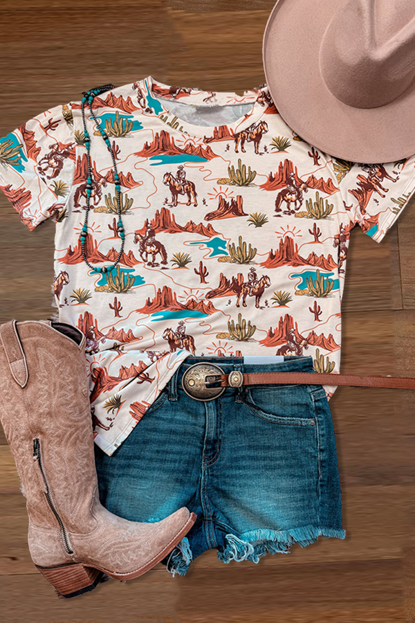 Stay on trend this season in our new pretty, round neck t-shirt. We especially love the abstract print fabric and think this piece will be a new favorite in your closet!