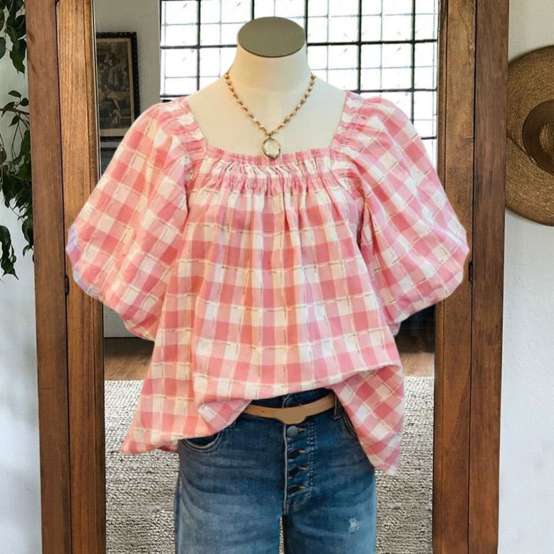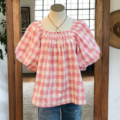 - Neckline: square collar