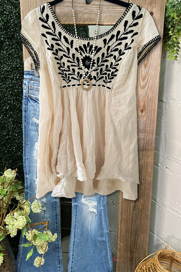 Casual Texture Embroidered Short Sleeve Top
