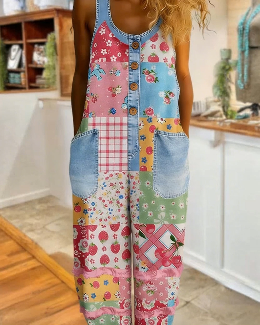 Stay on trend this season in our new retro,stylish, u collar jumpsuit. We especially love the quote fabric and think this piece will be a new favorite in your closet!