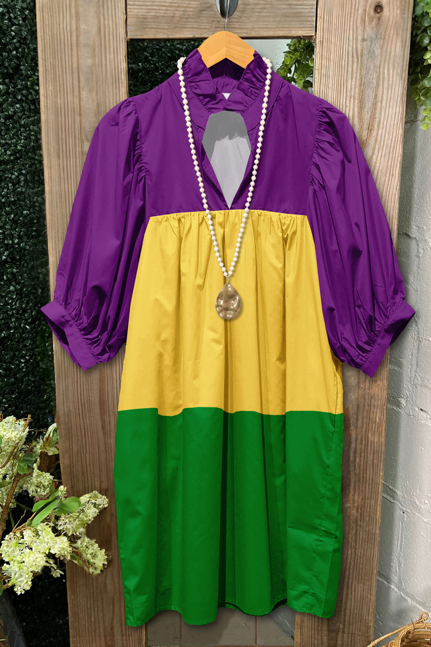 Stay on trend this season in our new retro, v neck dress. We especially love the graphic print fabric and think this piece will be a new favorite in your closet!