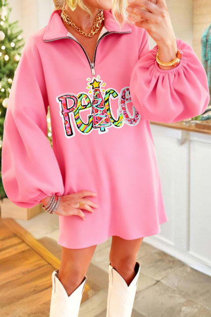 Christmas Tree Peace Zip-Up Sweatshirt Dress