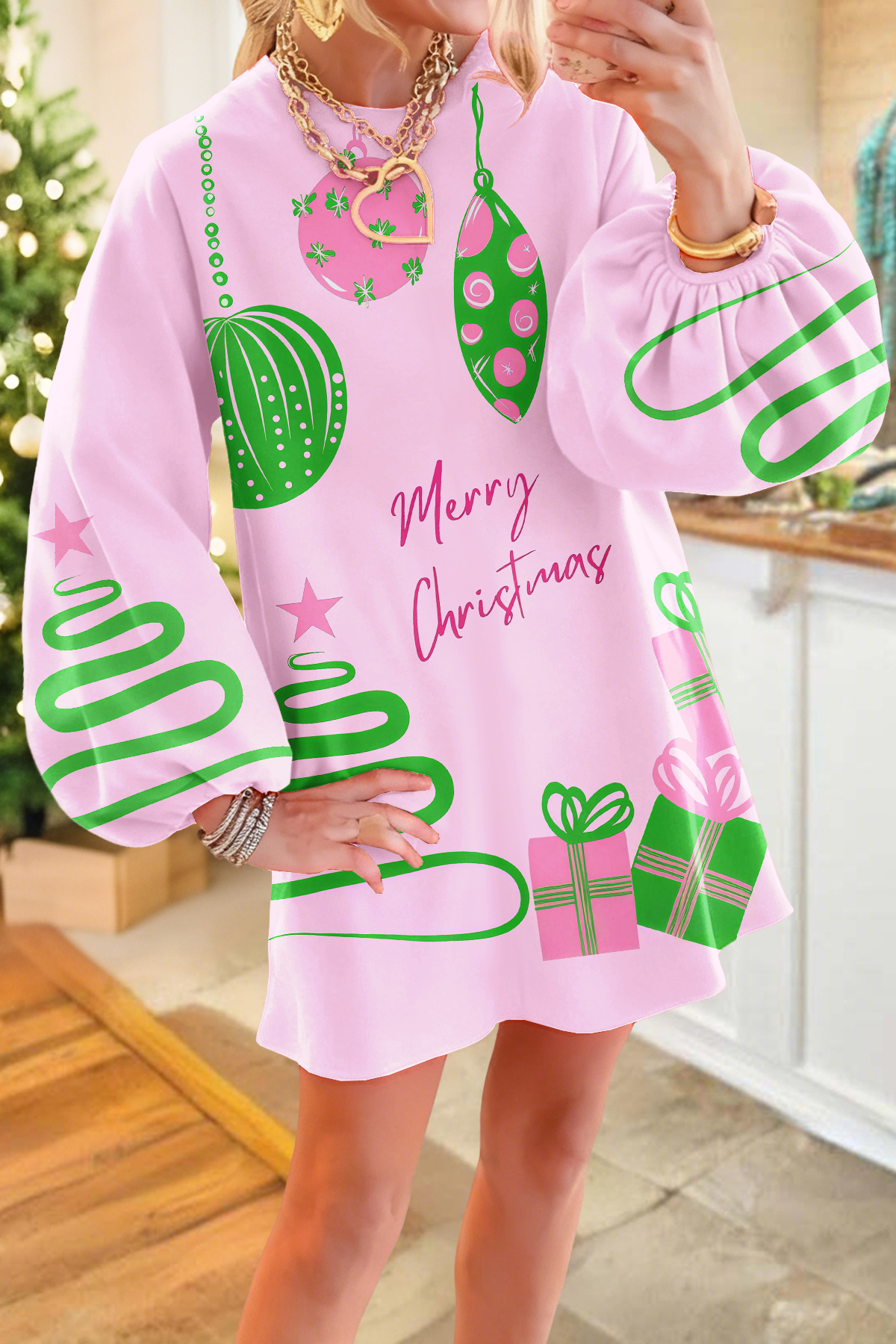Sweet Christmas Decorative Sweatshirt Dress